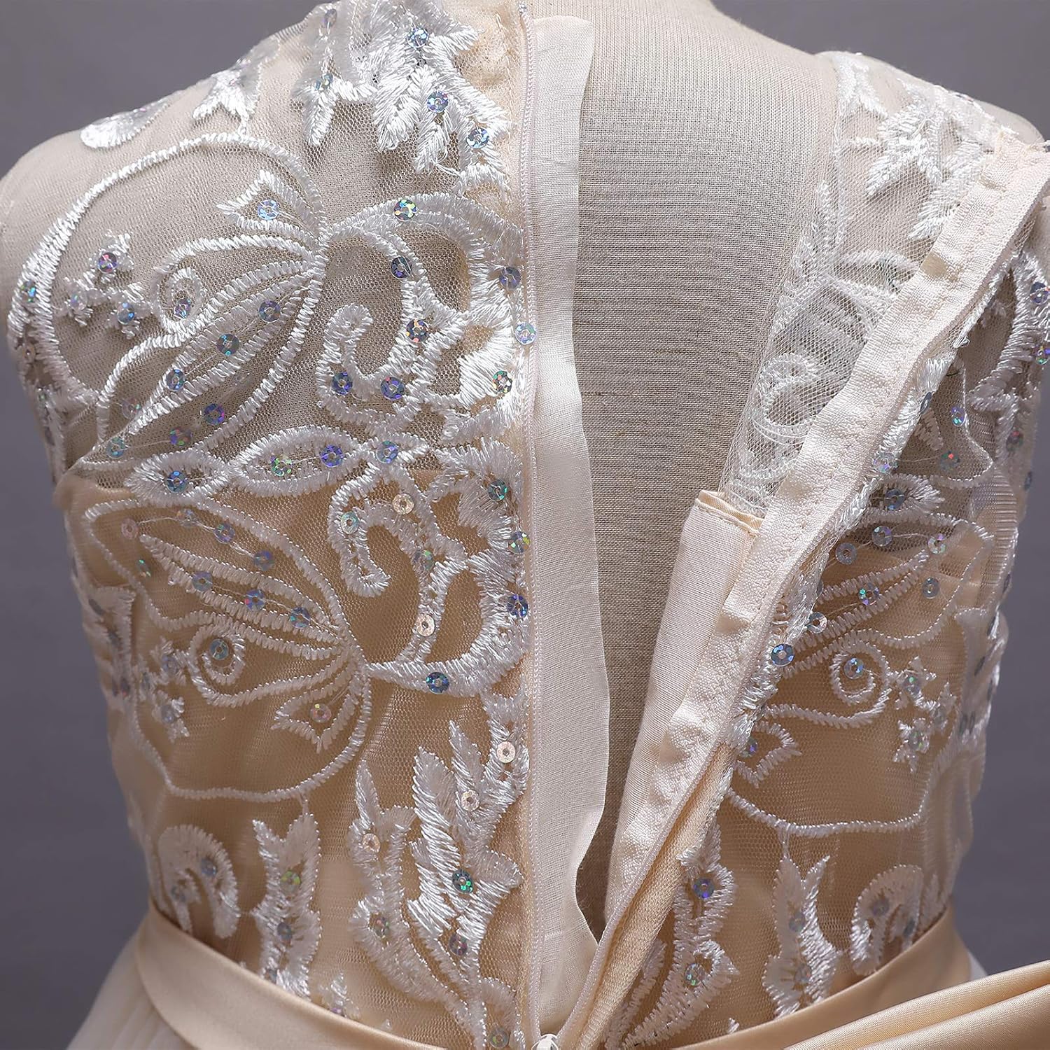 Polyester + Lace + Tulle Zipper closure Hand Wash Only ❤❤【Flower Girls Long Lace Bowknot Wedding Party Dress】Little big girls embroidery glitter sequins lace flower wedding bridesmaid pageant formal party long maxi dress, sweet junior princess first communion birthday dance prom gown floor length flare a-line puffy tulle ball dresses, elegant and gorgeous summer sleeveless bowknot dresses for 2-10 year-old baby kids toddler girl ❤❤【Classy Vintage Floral Lace and Bowknot Design】Girls long princess dresses, sleeveless suitable for spring, summer, fall. Delicate floral lace bodice embroidered with sparkle sequins and flower appliques at front and back, retro for rustic and county party. Sheer mesh Illusion round neckline with v-neck lining, hidden back zipper closure, easy for dressing. Adorable fixed bow at front waist and self-tied bow at back, cute and lovely, make it a slim fit silhouette, beautiful and graceful ❤❤【Flower Appliques Maxi Tulle Skirt】Princess pageant long tulle dresses for girls, full length tulle skirt, embellished with glittering sequins on flower lace appliques at hem, total 5 layers of the hemline, shows the fluffy appearance, consists of 1 layer embroidered tulle, 2 layers soft tulle, 1 layer satin, and 1 layer cotton lining, adds fullness to this flare a-line puffy swing dresses, a sash tied bowknot adds more cuteness, fit for dancing and twirling in ball gown prom party ❤❤【Select Size】Toddler kids flower girls long lace bowknot pageant birthday wedding party sequins puffy tulle dresses, available for 2-3T, 4-5T, 5-6T, 6-7T, 7-8T, 9-10T from baby to teens, a wide range of size for you to choose, great as little sister and big sisters family matching dress party clothes, best friends matching dresses, cake smash party birthday dresses, not only for your little daughter, but also for your bestie’ princess, niece, granddaughter, ect ❤❤【Occasions】Kids first communion prom sequins lace flower dresses for girls, adorned with elegant bowknot at front and back, perfect as flower girl wedding dress, baby baptism christening gown, ceremony dress, birthday dress, graduation dress, stage performance dance dress, pageant dresses, party dresses, homecoming dress, photography photo shoot dress, casual dress and so on