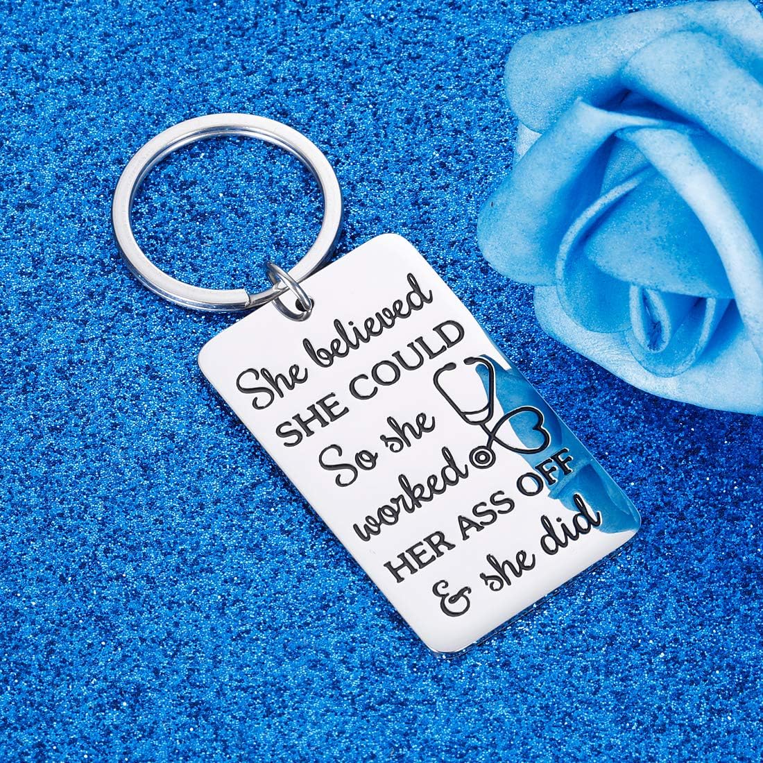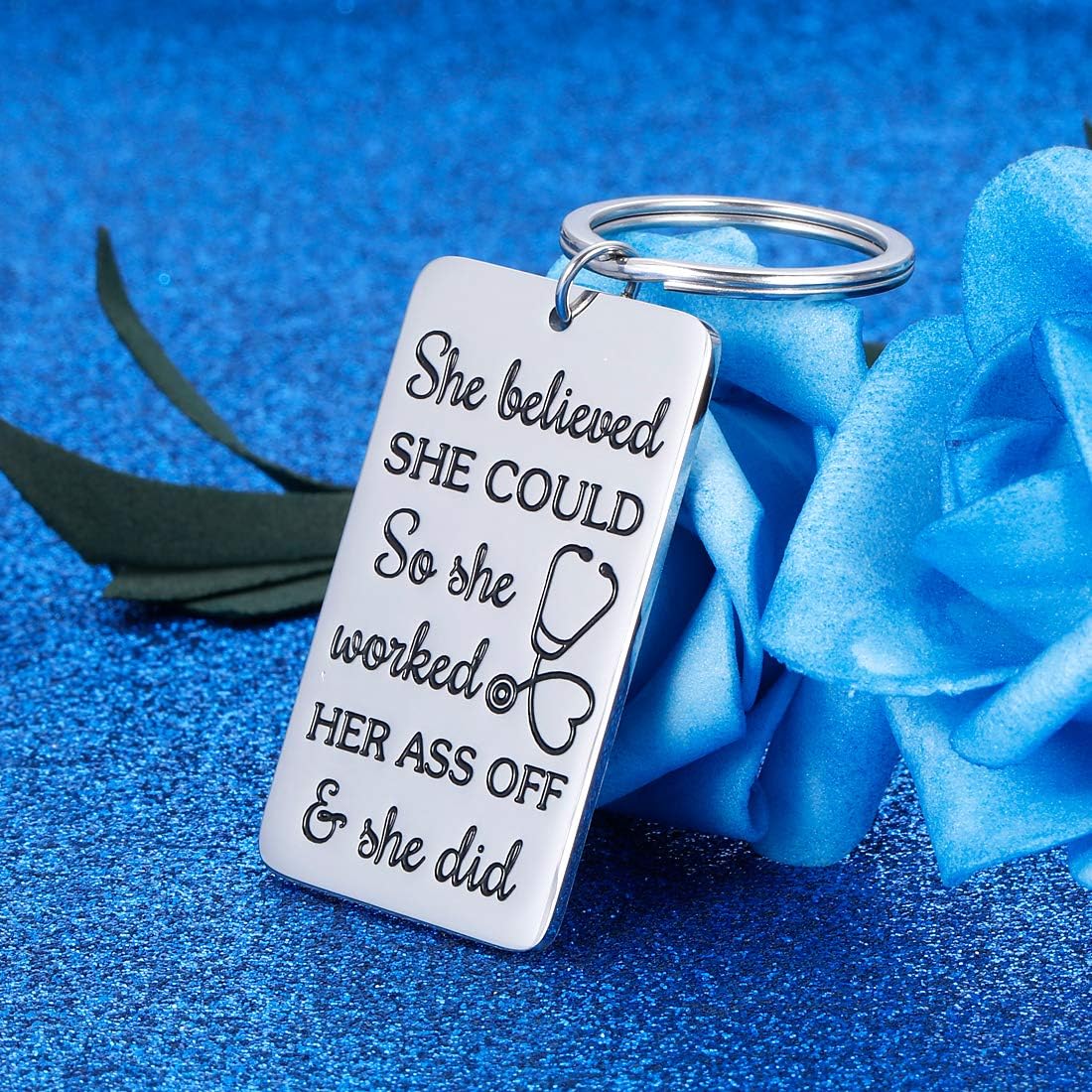 About this item stainless steel Imported Pull On closure Keychain for nurse practitioner or student – new nurse coworker, medical student, pediatric nurse, nursing assistants, student nurse for appreciation week, graduation, birthday, appreciation, thank you or just because. Gifts for all kinds of nurse -- Registered nurse (RN), Licensed practical nurse (LPN), Travel nurse, Nurse practitioner (NP), Intensive care unit (ICU) registered nurse, Medical-surgical (MS) nursing, Emergency room nurse, OR, PACU, NICU nurse and so on. Say Thank you -- We have all been helped by a Nurse at some point in our life, and this keychain will be a perfect gift to thanks those people who help us in so many ways without asking anything in return. Widely used – It can be used in the classroom, office, home, hospital, vehicle and beyond. Your health care providers will remember your consideration and support every time they use the key. SUPERIOR QUALITY -- ⓵Deeply engraved with strong ink, will never fade or scrape off. ⓶Ring connected tight to prevent items from falling. ⓷Not big but words are super clear. ⓸Packaged in an elegant jewelry box ready for gift-giving.