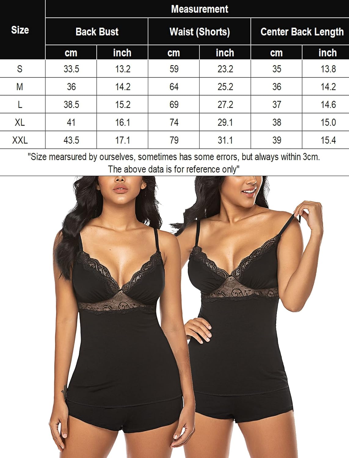 90% Cotton, 10% Rayon Imported Pull On closure The short pajama sets,2 piece sexy sleepware,2 piece cami lingerie,2 piece sexy lingerie for women are breathable, skin-friendly,and Super quality with elastic Comfy meets sensual in this cami PJS set featuring triangle cups, adjustable spaghetti straps, a sheer lace underbust band with a scalloped trim, a thin back strap, a loose soft bodice, and matching shorts with an elastic waistband and a cheeky cut back. The Womens Sexy Sleepwear is casual style ,great for sleepwear, nightwear, boudoir, holiday and loungewear,2 piece cami lingerie,2 piece sexy sleepware,2 piece short lingerie,avidlove camisole,avidlove lingerie 2 piece Our Model Information: Height 68.90inch, Bust 36.22inch, Waist 23.63inch, Hip 35.83inch (Size:S) Package Content: 1 x Women Pajamas Set, Two piece pajama sets with cami and shorts. Our size are standard US size, please choose your general sleepwear size