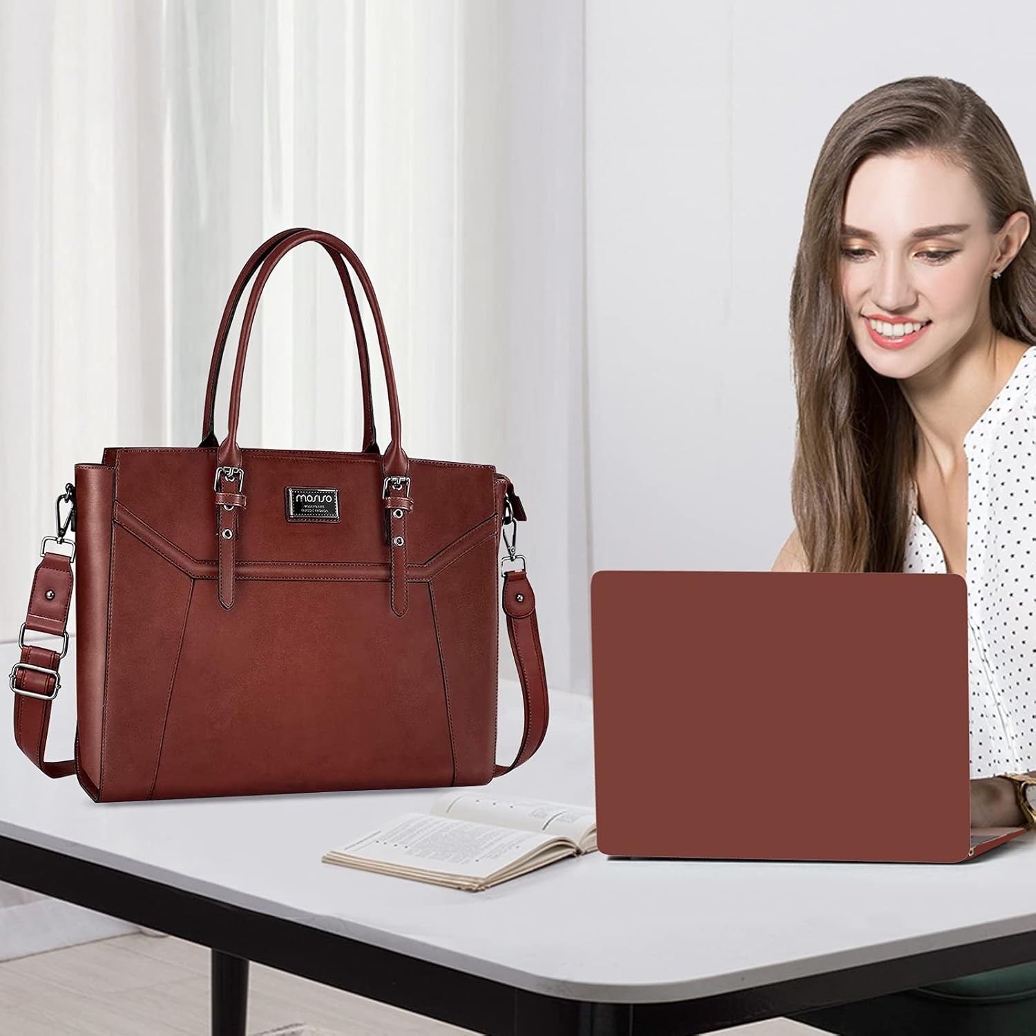 Internal Dimensions: 16.93 x 3.54 x 12.01 inches (L x W x H); External Dimensions: 17.32 x 3.54 x 12.6 inches (L x W x H). Adjustable top handle: from 9.84 to 12.6 inch. Adjustable long shoulder strap: from 31.89-56.5 inch. The laptop bag provides a thick professional padded compartment foam section with a hook and loop fastener strap closure for your laptop, that fully protect your laptop against accidental impacts and scratches. 1 zipperd pocket in the midddle for your valuable stuff. Enough space for all your daily needs, such as tablet, mobile phone, book, keys, mouse, passports, credit cards, cash, makeups and so on. Keep your items well organized. Made of waterproof premium PU leather, durable and fashionable. Removable shoulder strap allows you to carry it as a crossbody bag, shoulder bag or tote bag. Offering an elegant translation for everyday use. This attractive fashionable laptop tote bag is ideal for daily use at shopping, office, college, business trip, school, work, weekend, outdoor activities, outdoor holiday, travel, gyms, camp, etc. Nice size admirably suits womens, college students, teen girls and adults. Compatible with HP Envy 17, compatible with ASUS VivoBook Pro 17, compatible with LG gram 17, compatible with Inspiron 17, compatible with HP OMEN 17, compatible with Dell XPS 17 and most Ultrabooks / Notebook / PC Computer / Laptop up to 17 inches. 1 year warranty on every bag.