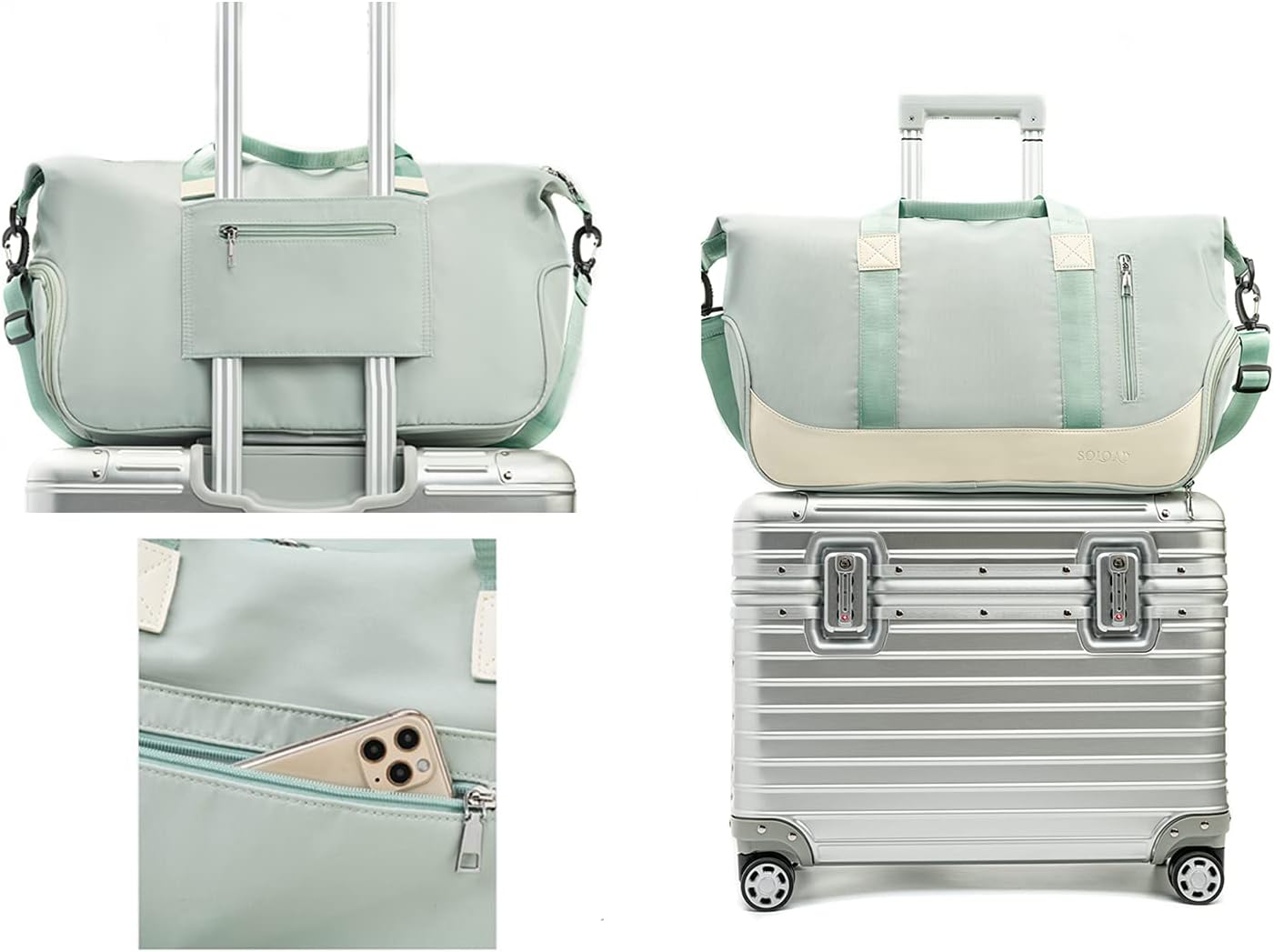 【Multi-purpose Duffle Sport gym bag & Travel bag】Our duffle sport and travel bag is a perfect companion for both indoor and outdoor sports such as yoga, tennis, gym, swimming, basketball……etc. It is also a great duffle bag for travel to put all you need for a short trip or business trip. 【Dry Wet & Separate shoes Compartment】Duffle sport gym bag delivers spacious storage with 1 large main zippered compartment for dry & clean clothes or everything for gym & traveling you necessary, and 1 upgraded waterproof PVC Lined pocket with zippered for wet items alongside the main compartment. 1 front and 1 back external small zipper pocket for easy, on-the-go storage. This sports duffel features a separated zipper compartment on the side for shoes, laundry or dirty gear storage. 【High quality & Lightweight】The duffel bag made with durable tear and water-resistant Nylon, and premium zippers. It features dual handles and adjustable, detachable shoulder strap for total comport, and different carrying options. Easy to wash this ultra-lightweight quick-dry gym bag. 【Airplane Friendly Travel Bag】The perfect carry-on compliant bag for airline travel. Integrated trolley sleeve slides over rolling luggage handle making airport travel a breeze. Your ideal overnight weekend boarding bag for business or personal travel. 【CUSTOMER SATISFACTION GUARANTEED】We provide 100% satisfactory customer service. If you are not satisfied with your SOLOAD Sports gym bag or receive a defective product, please contact us for a new replacement. Feel free to contact us if you have any questions with the product.