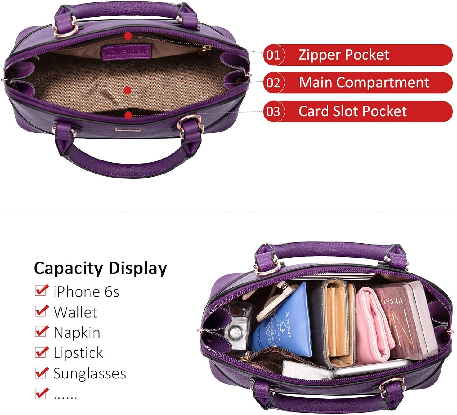 Faux Leather Imported 【Well Made and Fashion Design】 Made of good quality synthetic leather fabric and polyester lining. 【Pockets】The shoulder bag has 1 main compartment, 1 zipper pocket and 4 card slot pockets. 【Trendy & Fashionable】This satchel purse consists of 2 color combinations, smooth double top zipper design is easy to open and close. 【Stylish & Functional】This stylish medium size dome crossbody purse features adjustable long shoulder strap with double top zipper closure. Perfect for those sunny days when carrying a handbag is not an option. Good for both traveling and everyday use. 【6-Month Quality Protection】If you have any quality problem about LOVEVOOK handbags, please contact us freely through email on the order page, we can Free Return or Exchange.