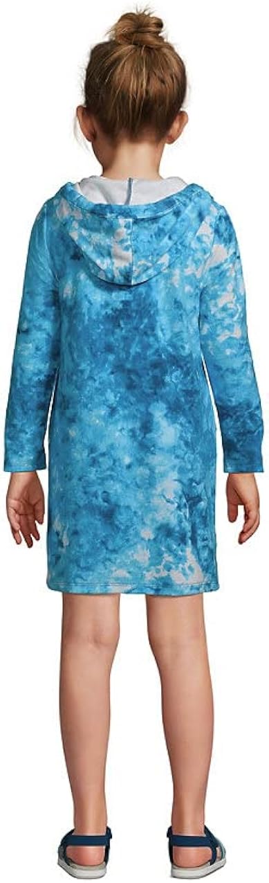 Cotton-blendPoly-blendTerry Cloth Machine Wash Quality materials: Soft terry fabric is 80% cotton and 20% polyester; super absorbent material soaks up moisture from her swimwear; this machine washable hooded girls coverup is easy to keep clean Design features: Features reinforced shoulder seams for durability; kangaroo pocket can hold her swimming goggles and little pool and beach accessories; pull-over style is easy to take on and off Style options: Your toddler or big girl can wear this just like a bathrobe over her bathing suit; looks cute with sandals and sunglasses; just add swim leggings to cover her skin and prevent sunburns Fit: Relaxed poncho-like fit makes this simple to take on and off; generous cut can accommodate a growth spurt especially if you order a size up; hits just above the knee so it's easy to move in Summer fun: Your mermaid can wear this to the pool beach or lake; won’t fall off like a towel so it’s ideal for walking around a resort; take it to the water park so she can wear it over her swimsuit