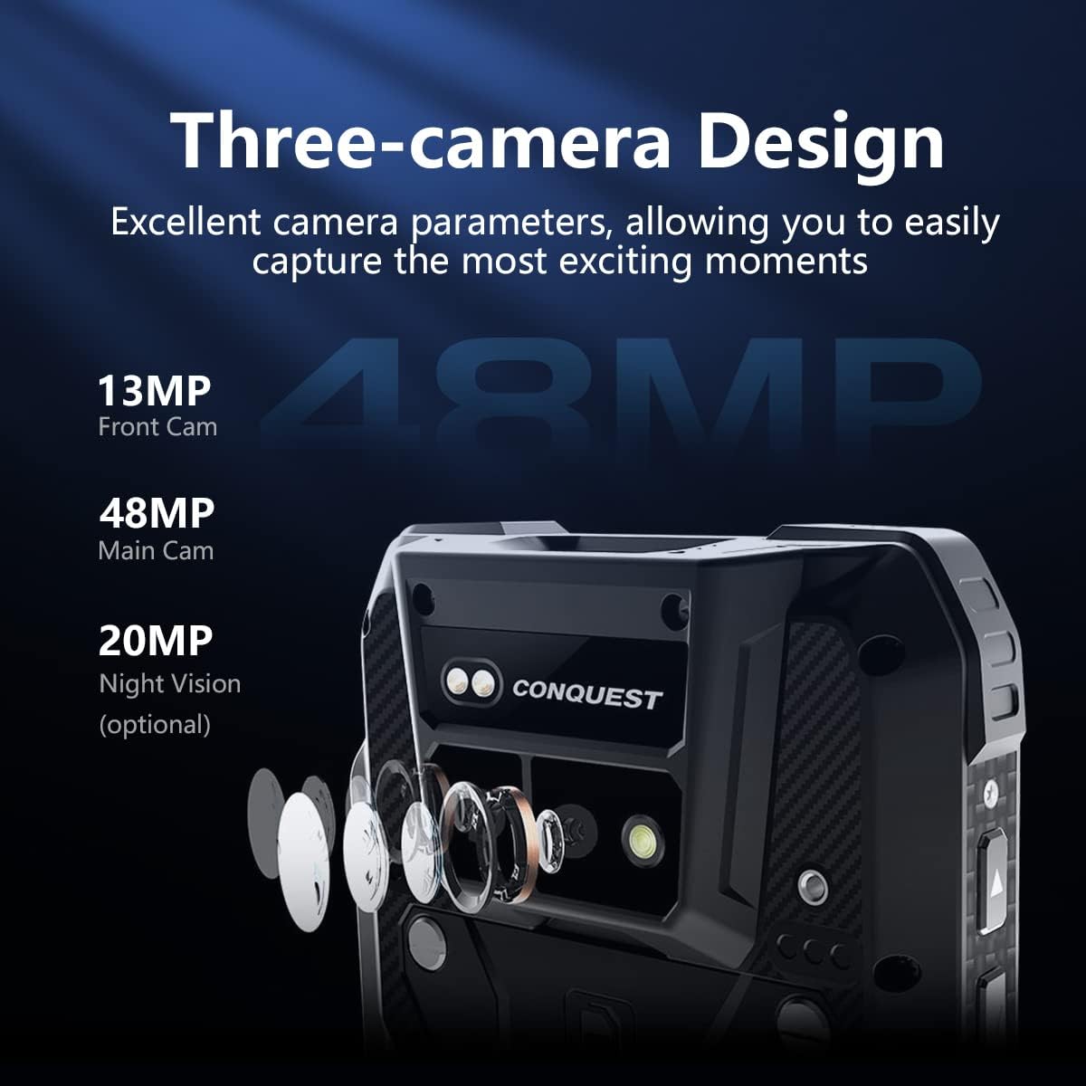 About this item            【6+128/8+256GB】CONQUEST S29 unlocked mobile phone is equipped with MediaTek Dimensity 800 processor, which is an octa-core CPU with a frequency of 2.0GHz. The memory is 6+128/8+256GB, which provides ample space for downloaded apps, videos, images, music storage.     【7600mAh Large Battery】CONQUEST S29 Unlocked Android phone is equipped with a 7600mAh large battery for up to 600 hours of standby, 2-3 days of normal use, and 15 hours of talk. Provides all-day power without interruption for your outdoor adventures or long shifts.     【48MP Main Camera, 13MP Front Camera】CONQUEST S29 rugged phone with 48MP main camera + 13MP front camera, CONQUEST S29 HD camera with zoom for better photography.     【Customized service】CONQUEST S29 rugged mobile phone can realize a variety of customized combinations of modules. At present, thermal imaging, DMR intercom and other functions are optional. If you have any needs, please contact us and we will do our best to provide you with a solution.     【Dual SIM & Dual Standby & Compatibility】CONQUEST C-S29 unlocked waterproof smartphone can be used in dual SIM and dual standby. It is also compatible(✔) with T-mobile, CTExcel, FreedomPop, Speed Talk, U.S. Cellular, H2O, Mint Mobile, MetroPCS, Ting, Movistar, Claro, Telcel, Tigo,lycamobile, Vivacom, Ultra Mobile, Tello Mobile,Bell, Rogers Wireless, Chatr, Luck Mobile, Virgin Mobile, etc., Not compatible(❌): Verizon, Sprint, New AT&T, CRICKET, GCI.