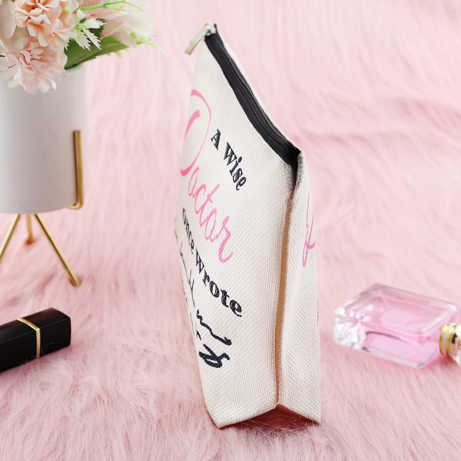 Doctor Gifts for Women -- The bag is made from Cotton and linen and has a zipper. Double-sided printing, High quality material, soft, hardy & durable, the pouch feels very high quality, The background color is stain resistant.Image print is bright and clear, vivid color. This cosmetic bag is the best gift for doctors. Cosmetic Travel Bag -- The makeup bags measure 10 x 6.7 inches/ 25 x 17 cm, a good size for a travel cosmetic bag.Manual measuring permissible error. There is enough space to store your belongings. And you can take it with you, ideal for daily using and travelling. You can give it to the doctor, or friends around you who are doctors. Care: hand wash, spot clean with mild soap and water. Graduation Gifts for Doctors -- This cosmetic case can be applied as makeup bag, travel case, pouch, organizer, purse, stationery bag, pencil case and so on; Easy to use on any casual occasion; Compact size allows you to put in your backpack or luggage at ease, Gifts bags suitable for doctors, future doctors and friends who are doctors. Makeup Bag Organizer -- These bags are great gifts that are simple and standout. There is a sentence written on the cosmetic bag:" A Wise Doctor Once Wrote". Portable makeup bag with large capacity for your mascara, lipstick, face cream, cell phone, sunglasses, power bank and other travel gadget, practical and useful. I believe people who receive the gift will love it. Makeup Bag for Purse -- Want to thank the doctor? This is a perfect gift for many occasions. Doctor Birthday Gifts Medical Student Gift, Doctor Gift Doctor Appreciation Gift for doctors thank you gifts. As perfect gift for your best Doctor friend, birthday gift, going away gift, Thanksgiving Day gifts, back to school day gift, Anniversary Day Gifts.