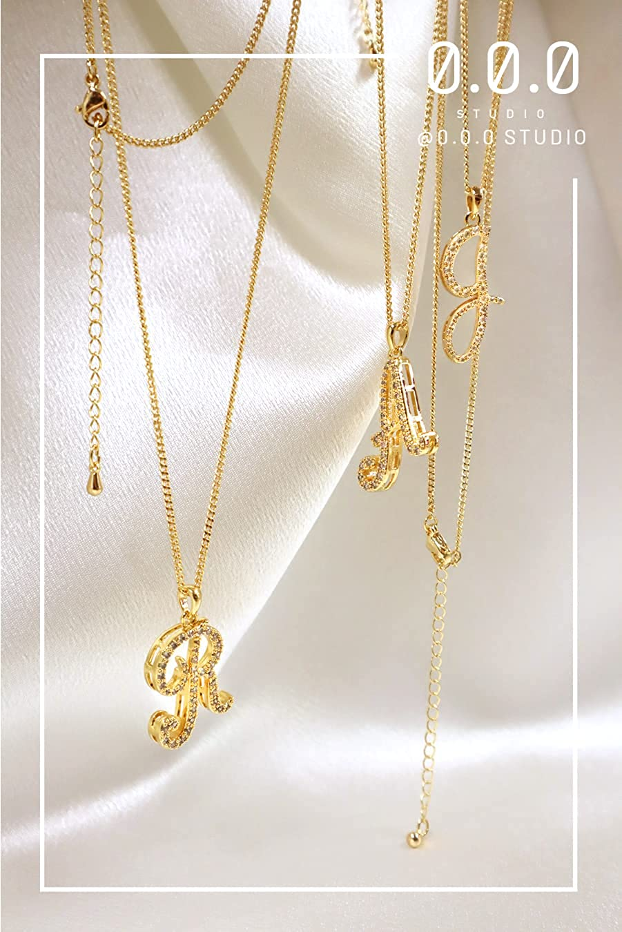 0.0.0 STUDIO Delicate Initial Necklace for Women,Girls,Gift 14K Gold Plated Cubic Zirconia Pendant Letter-R