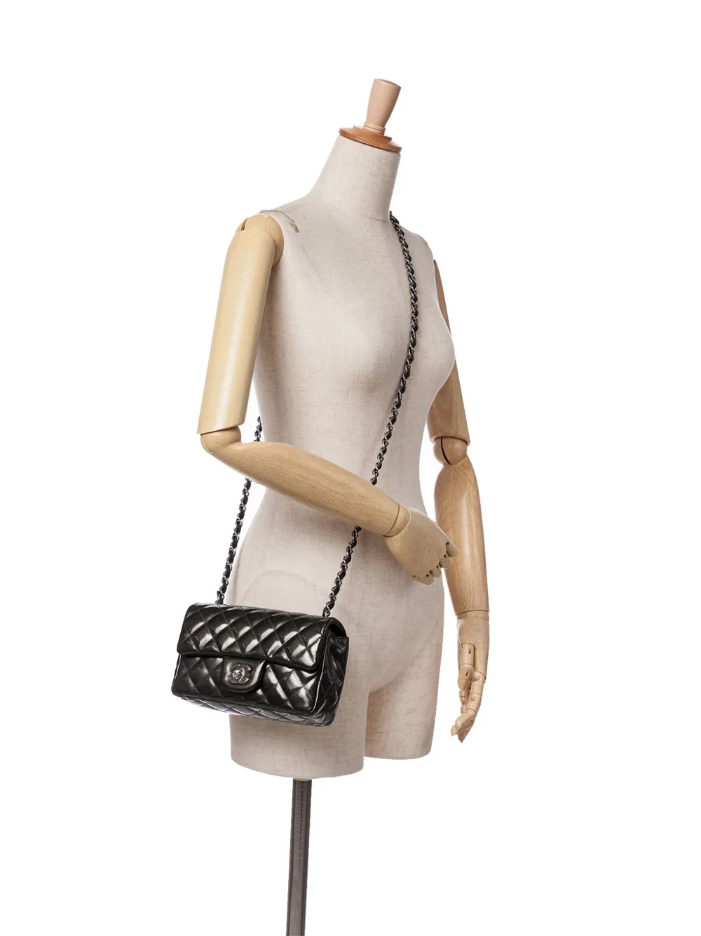 2012-2013 Mini Rectangular Classic Striped Patent Single Flap crossbody bag