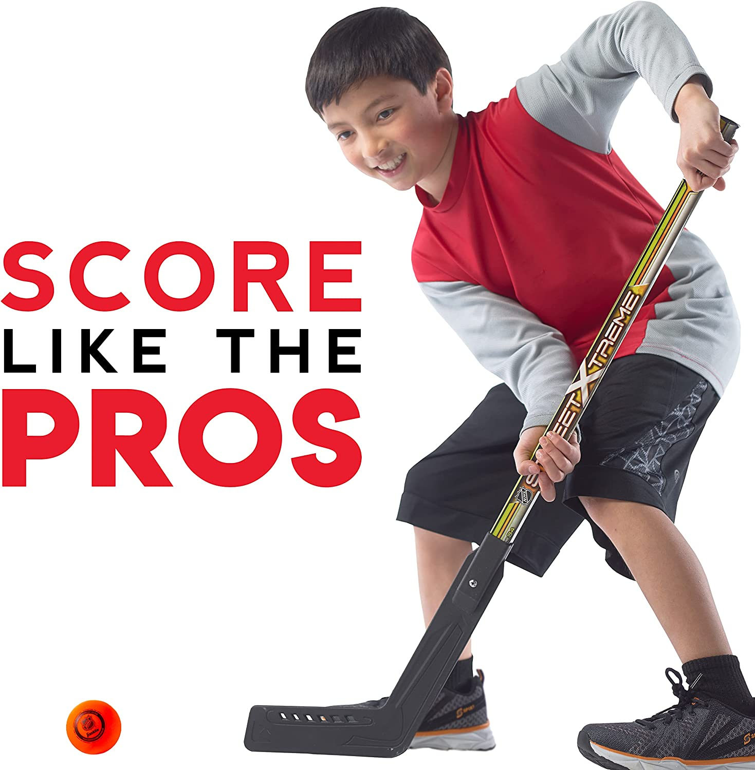 • OFFICIAL STREET HOCKEY BALL: This set comes with an official size street hockey ball specially designed for low bounces to keep the ball in play