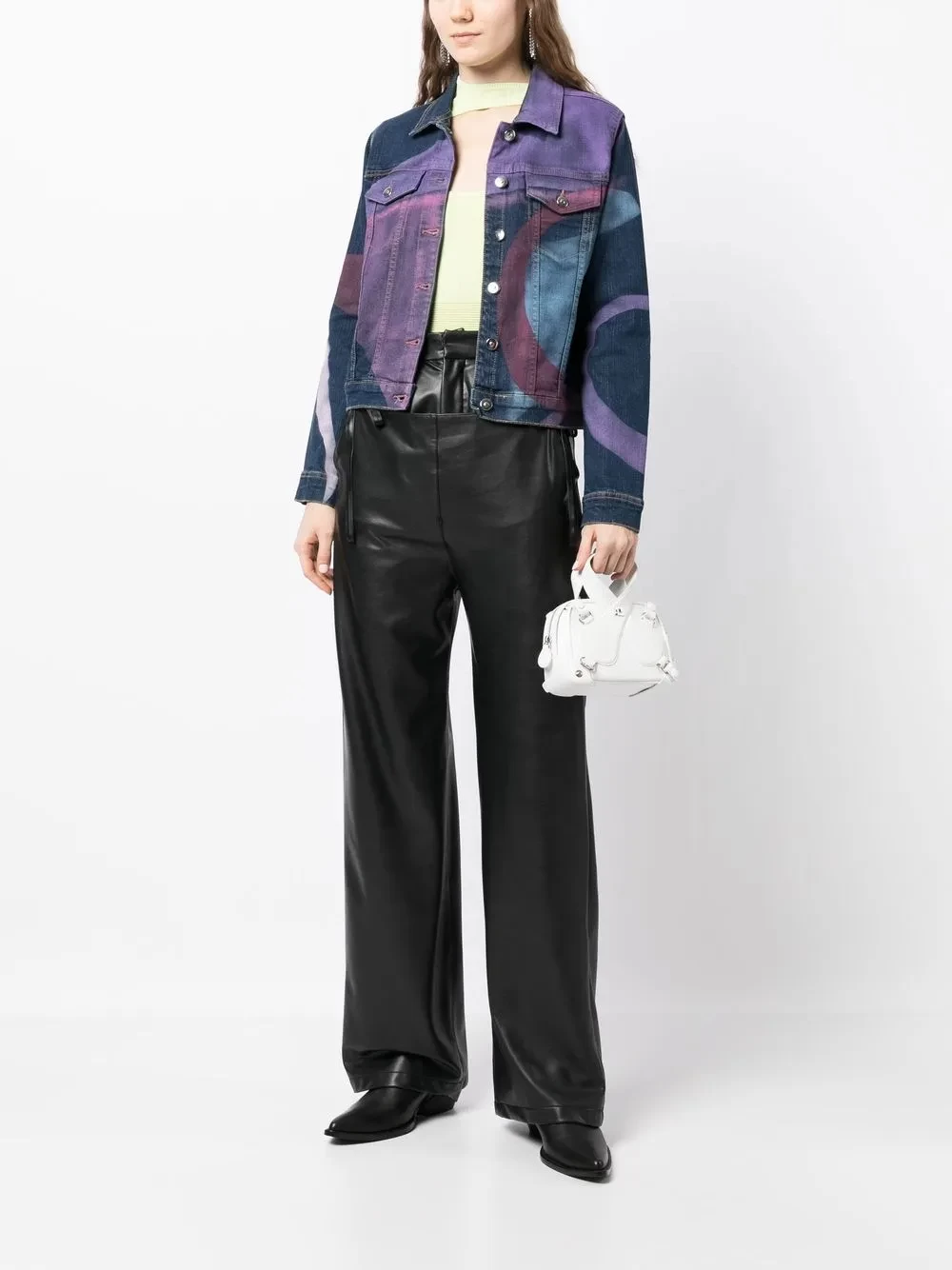 blue/multicolour cotton blend all-over graphic print classic collar front button fastening two front flap pockets long sleeves