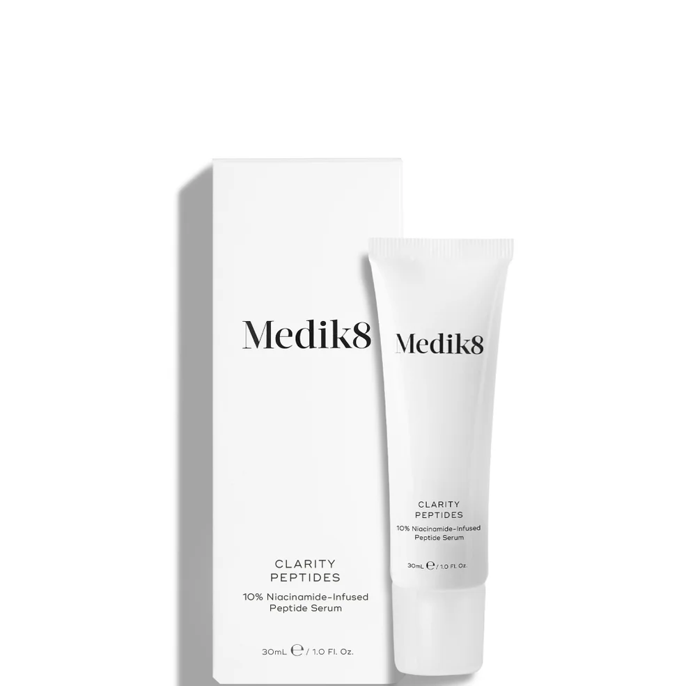 Coming the rescue of stressed-out, run-down skin, Medik8s Clarity Peptides formula is infused with potent actives to restore lost luminosity, calm irritation and battle blemishes.