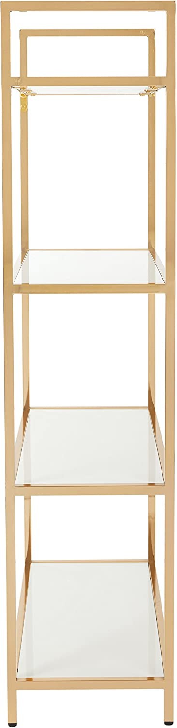 OSP Home Furnishings Alios Bookcase, White Glossy Finish with Gold Plated Base