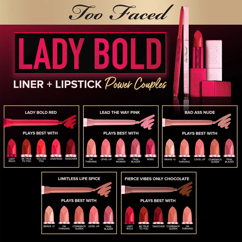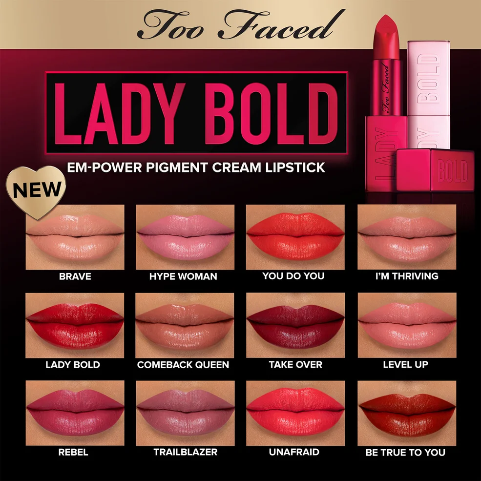 Too Faced Lady Bold Em-Power Pigment Lipstick 4g (Various Shades)